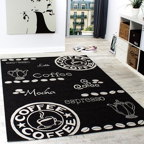 Vimoda Teppich Modern Kuchenteppich Kuchenlaufer Coffee Grau Weiss